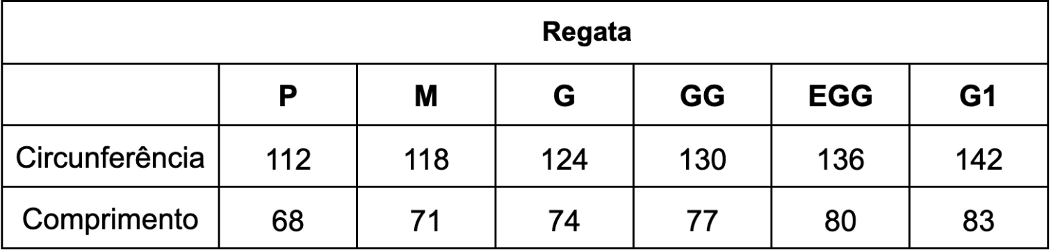 Confira a tabela de medidas antes de escolher seu tamanho.